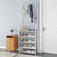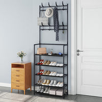 Cuier haine cu suport pantofi - 5 rafturi, modern, durabil, spațios, negru ❘ D3791