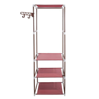 Păstrează-ți hainele organizate și la îndemână cu un dulap textil practic, modern și rezistent! Cu 3 polițe spațioase, bară pentru umerașe și un cadru solid din metal, acest dulap este ideal pentru dormitor, dressing sau spații temporare. Ușor de montat și perfect pentru a aduce ordine fără efort.